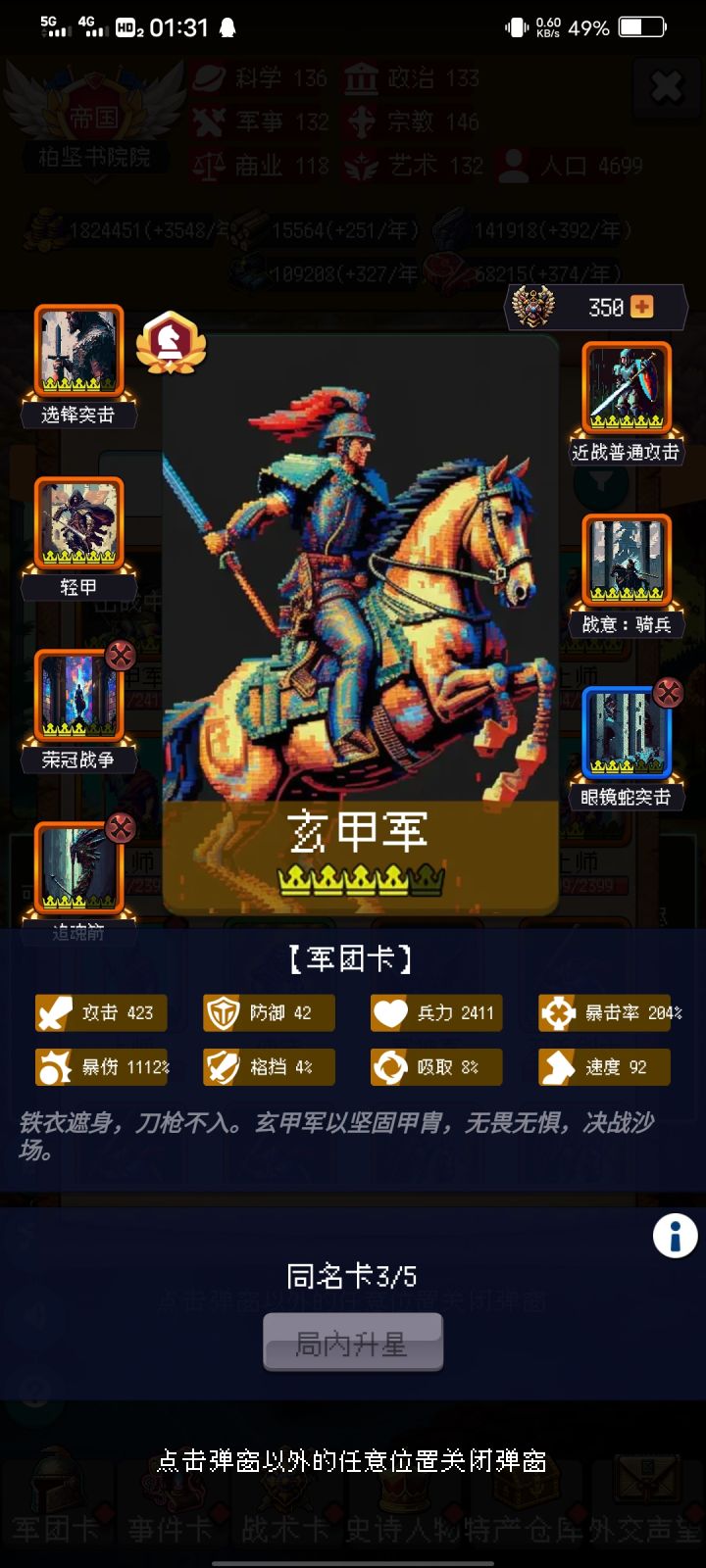 1.演习能获得永久弓兵橙卡 2.玄甲军可以在战后处理获得