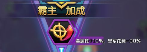 如图,这一把对局的buff是全属性+15%,空军花费-30%。相信各位将军已经有了这一局的思路了吧?根据自己携带的卡组,决定要不要拿下霸主地位和这个buff。