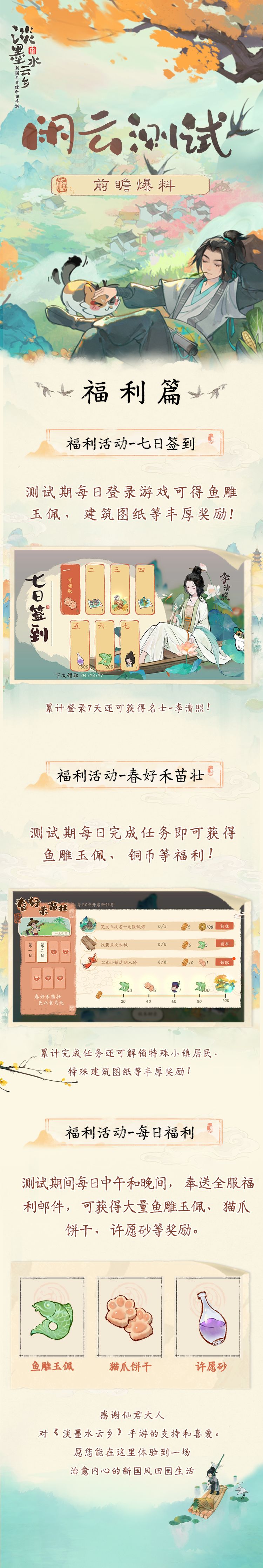 昨天给大人们公布了本次测试中玩法前瞻,今天给大人们带来的是测试期间的活动福利爆料~仙君大人们一起来看看吧~