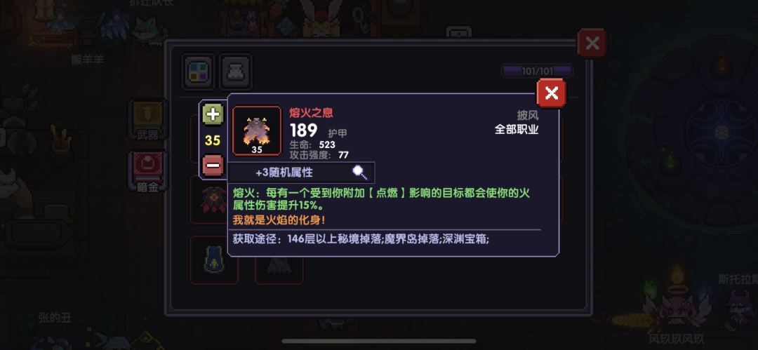 披风的备选是:熔火之息、噬灵者