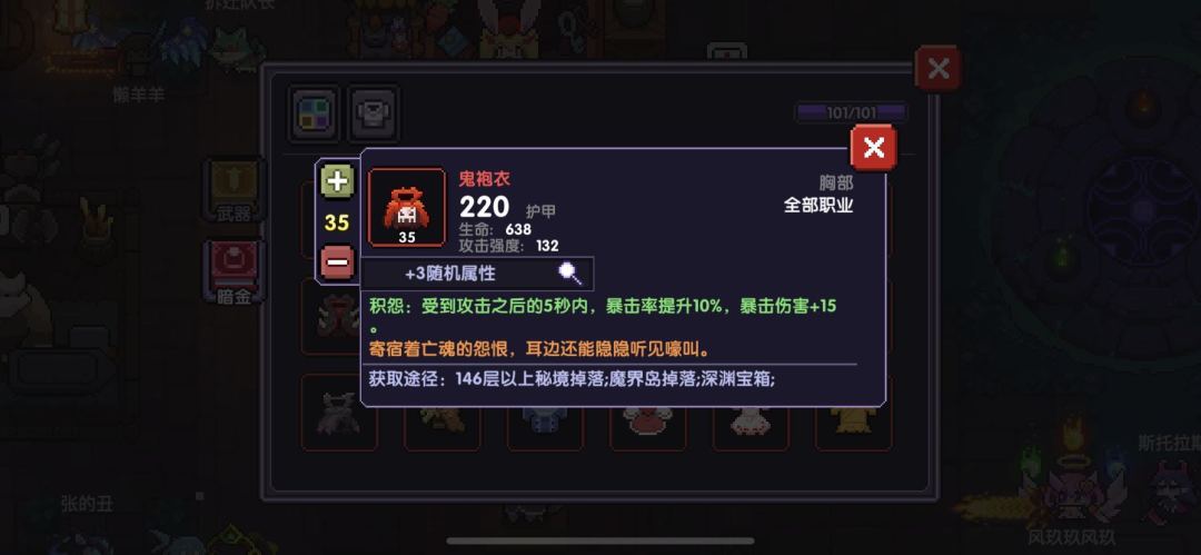 在暴击率足够100%的情况下选择树叶外衣,在暴击率不够100%的情况下选择鬼袍衣补足暴击。属性选择暴击和火攻。