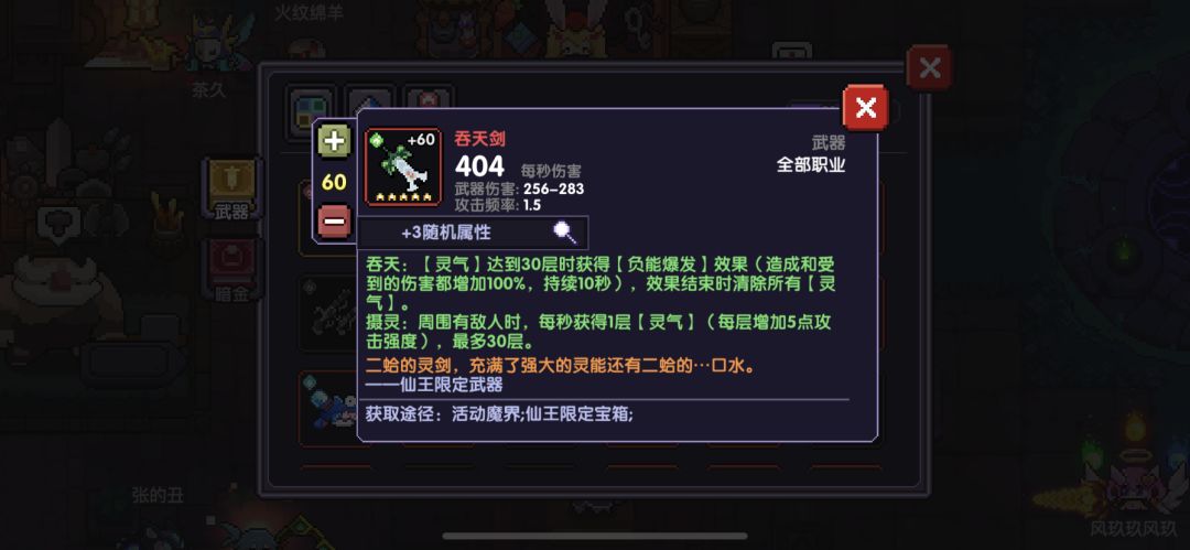 对于武器的属性选择。(吞天剑和吞天弓的属性可以调换,但是考虑到后续替换吞天弓的可能,建议剑选择暴击)