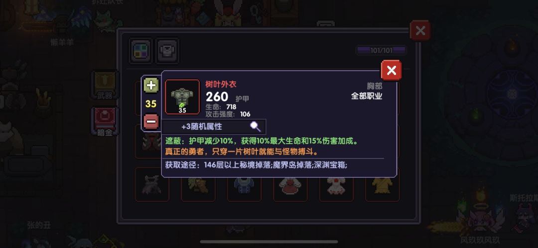 衣服的备选是:树叶外衣、鬼袍衣