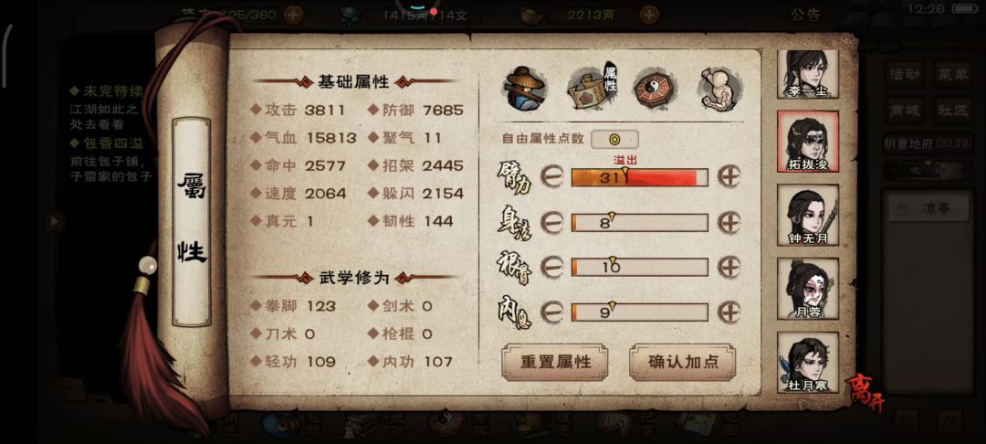 然而这个提升是非常微弱的,像图片里我的纯臂力工具人拓跋点到了311臂力,吃一颗破障丹也才加了2点攻击。