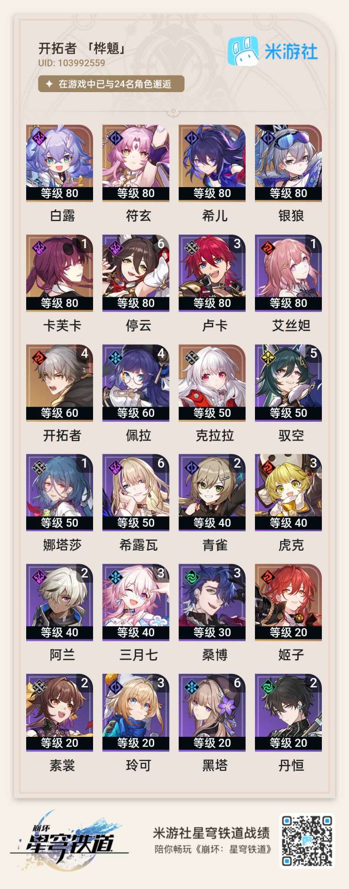 抽符玄专武的时候又歪一张,加上之前常驻一共4张。