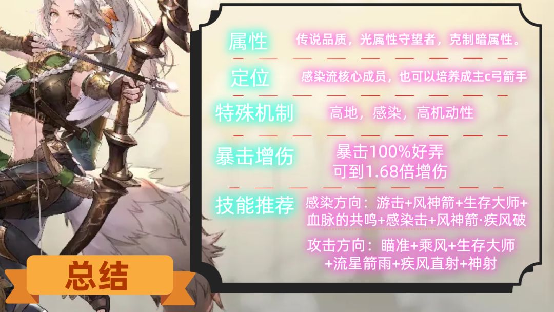 2, 定位:感染流核心成员,也可以培养成主c弓箭手。
