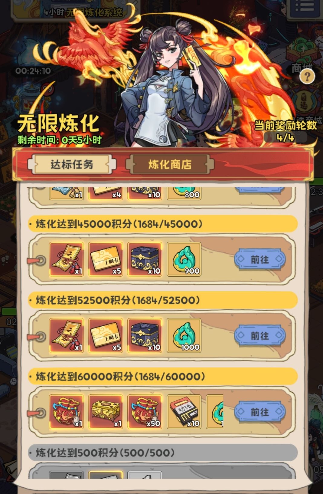 第5-7天开无限炼化活动(消耗灵核),60000积分一轮