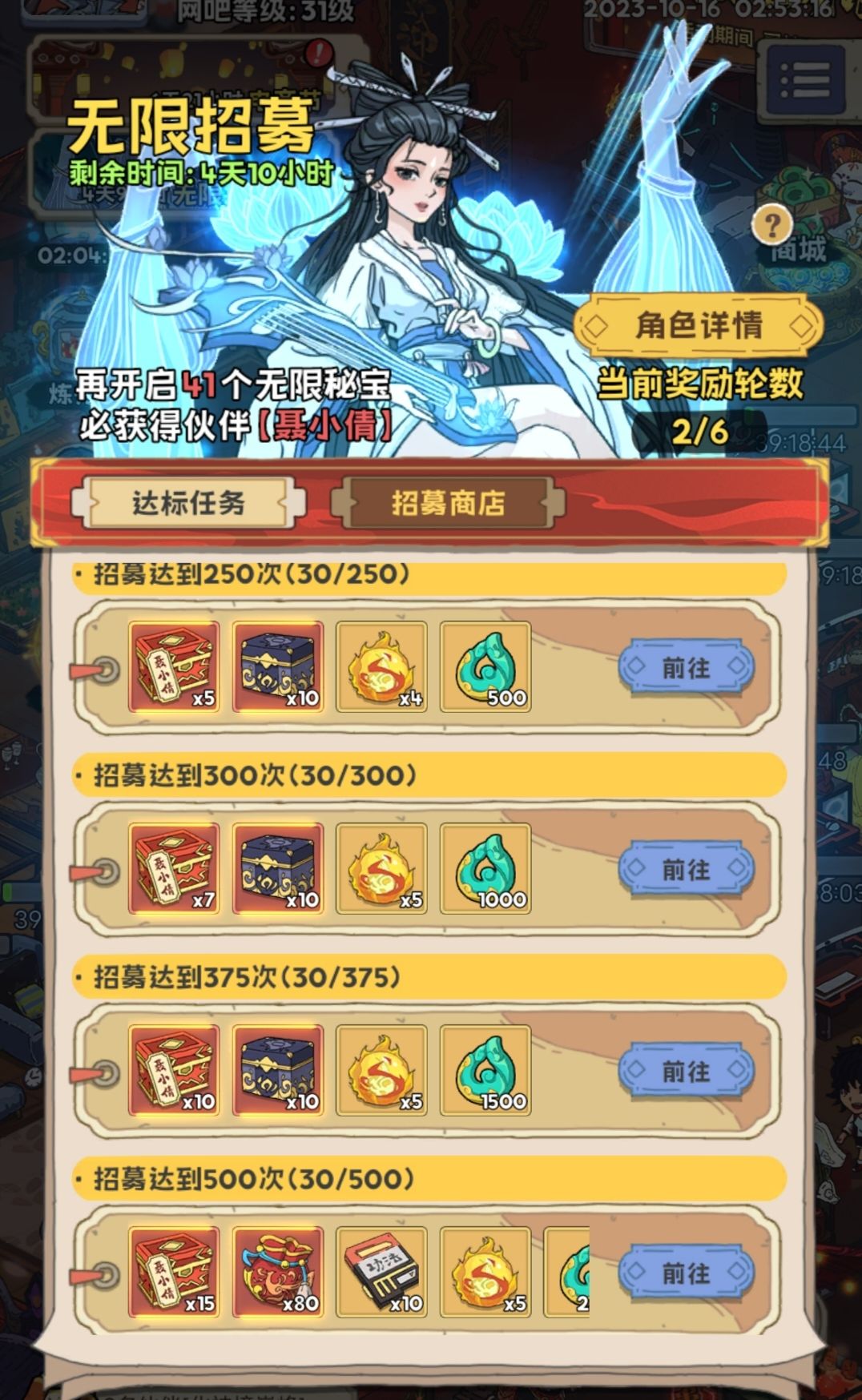 第2-4天开聂小倩招募活动(消耗招募券),500抽一轮