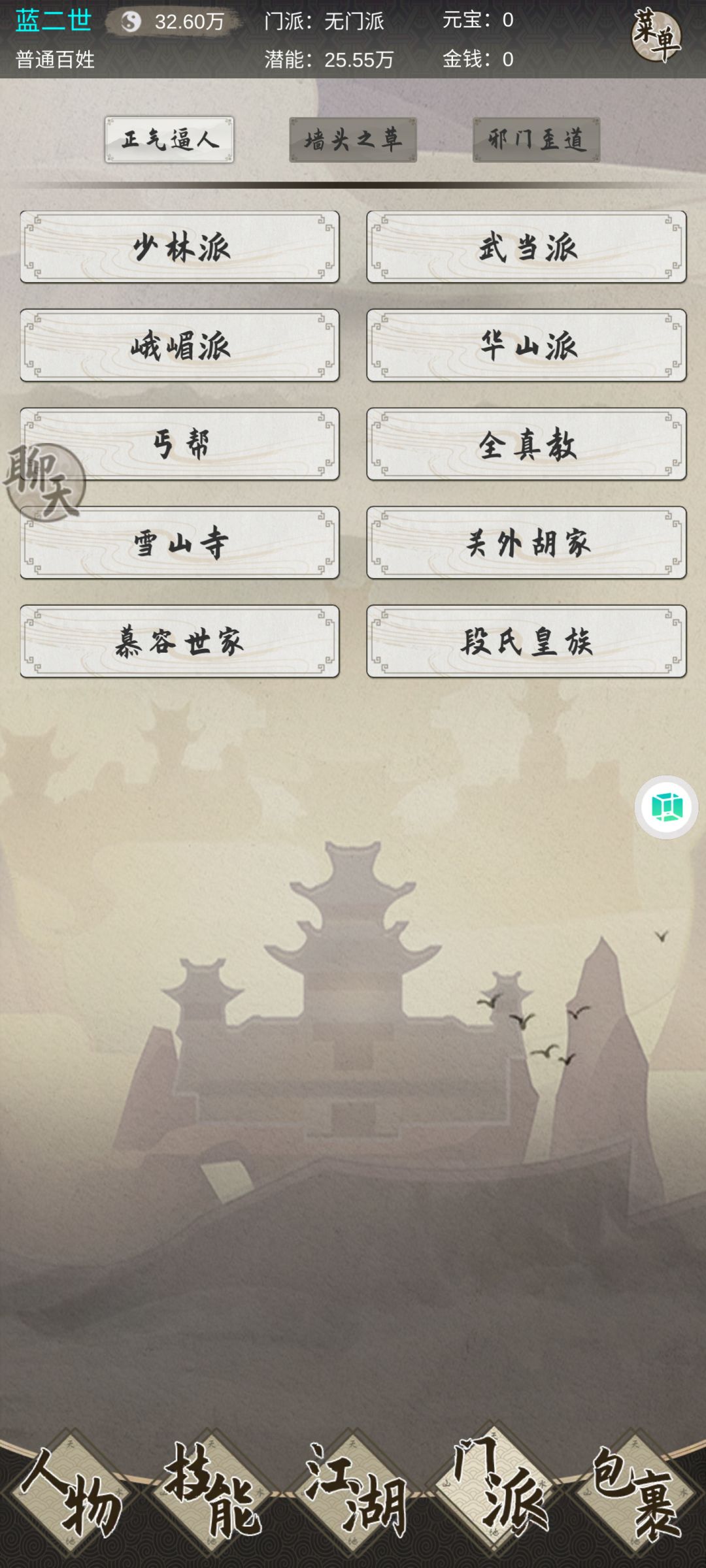 领取完后,可以先在群看看你想要入的师门,师门可以随便脱离,门派专属武功是会掉的,基础技能不会掉。