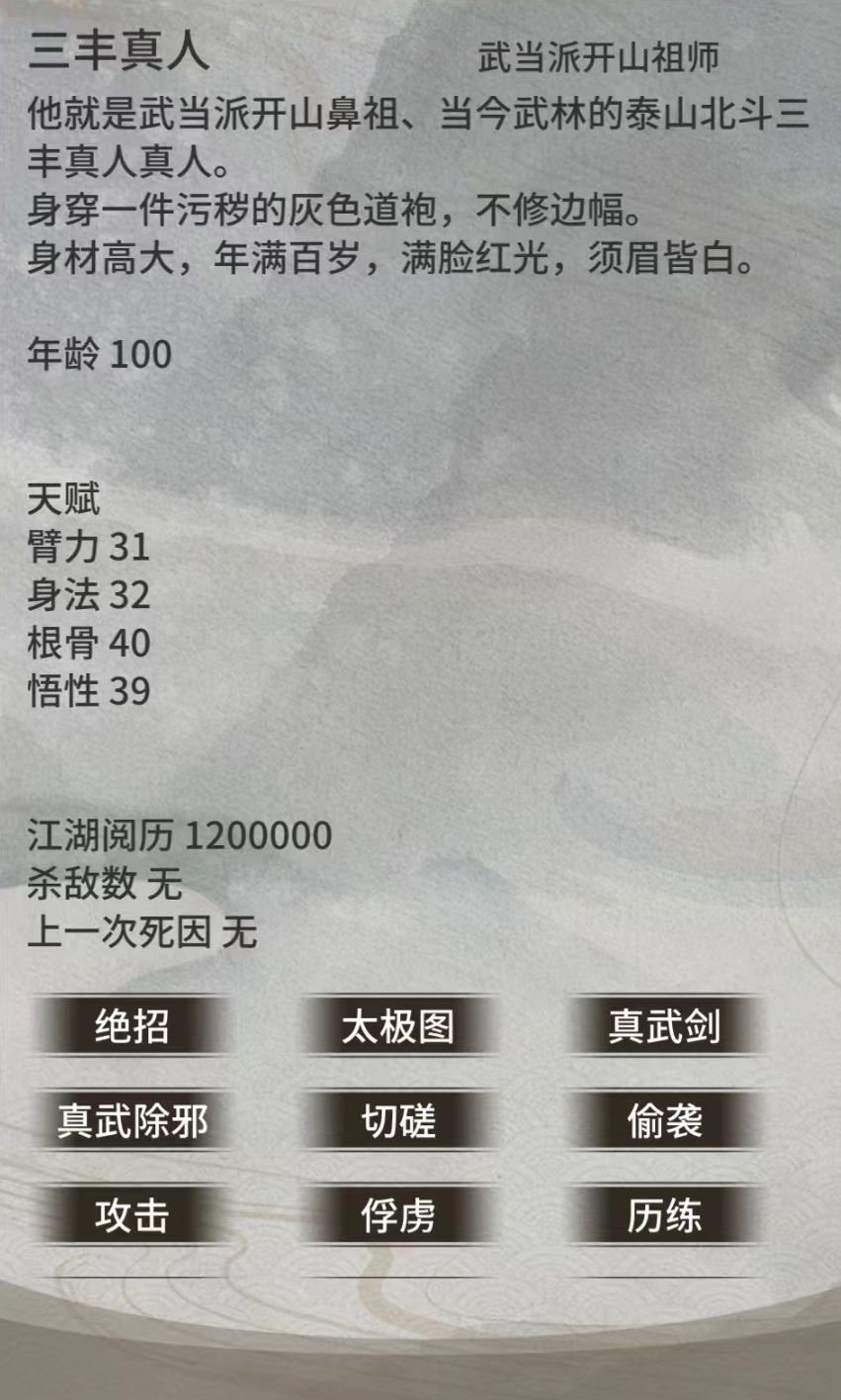 在这段时间主要提升自己的武当心法,道学心法和正气值。才能够拜下一个师傅,拜师条件见图2。最终成为张三丰的弟子。