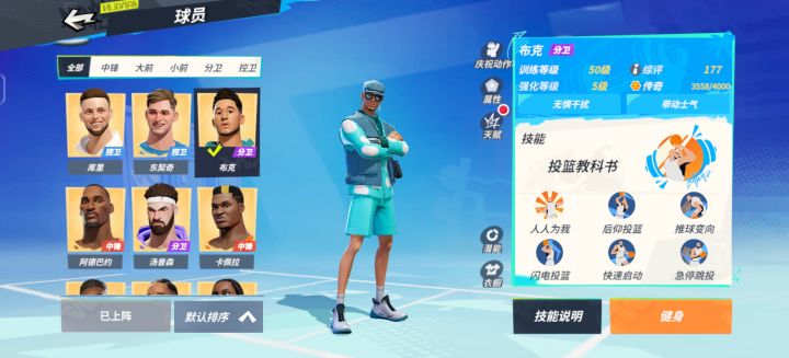 培养的球员只有一张橙卡库里以及布克。库里0突技能点满,明天就可以1突,布克4突技能点满,库里一套潜能和半套潜能以及布克大半套潜能。