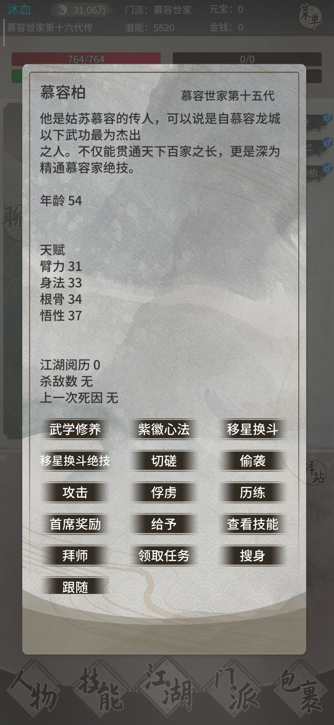 如果不选择方式,就点门派飞慕容博,然后点慕容博,点历练(图5)后就可以接取师门任务,慕容的师门100w经验以前可以用野球拳打,100w经验以后可以用斗转星移打
