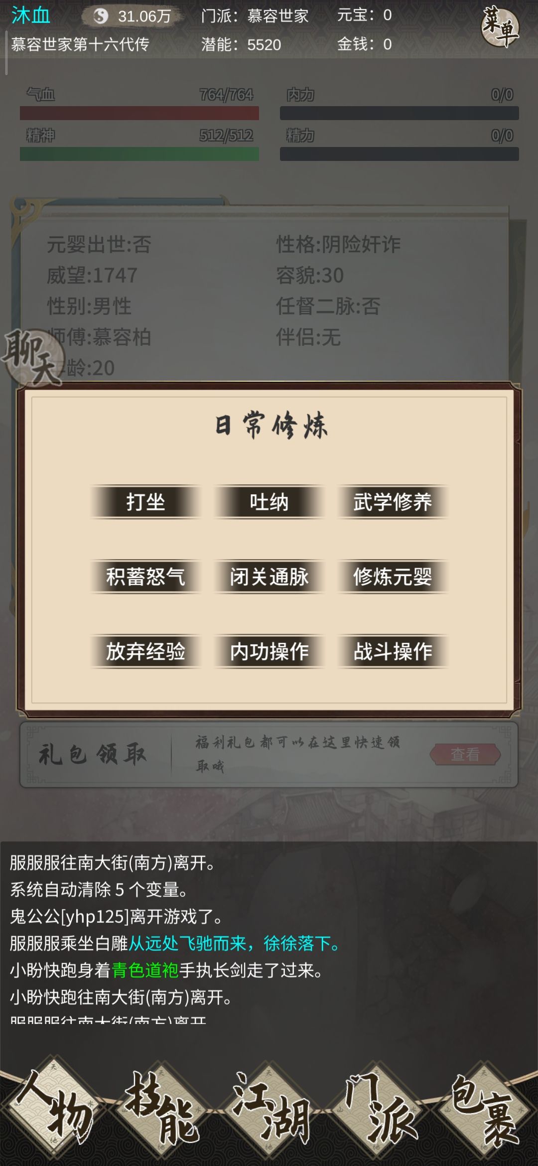 再然后领了礼包之后可以先去扬州钱庄点潜能银行把潜能都存进去(图3),再接着去人物那里挂打鸟