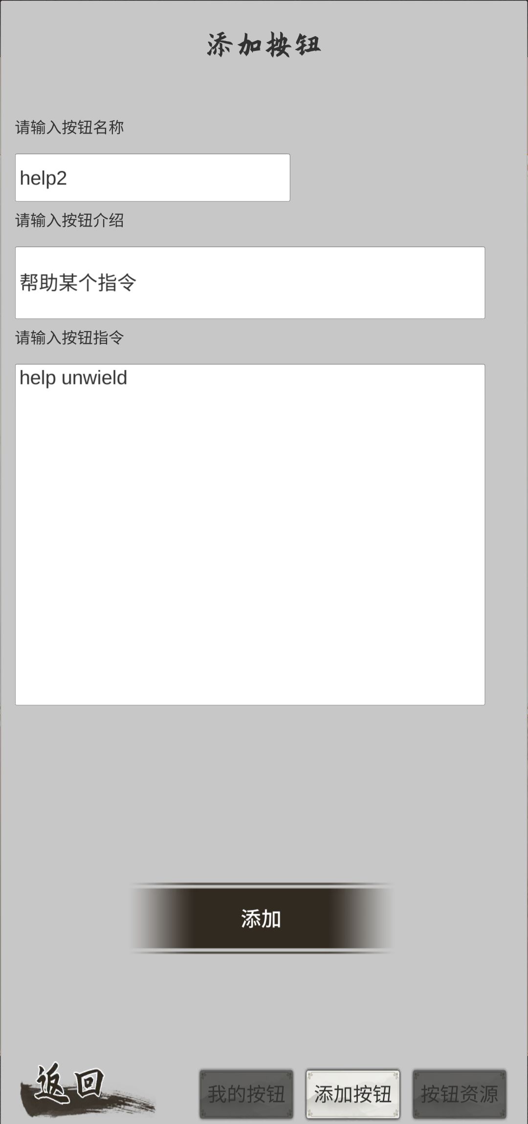按钮名称和介绍自己命名。指令直接复制注意格式