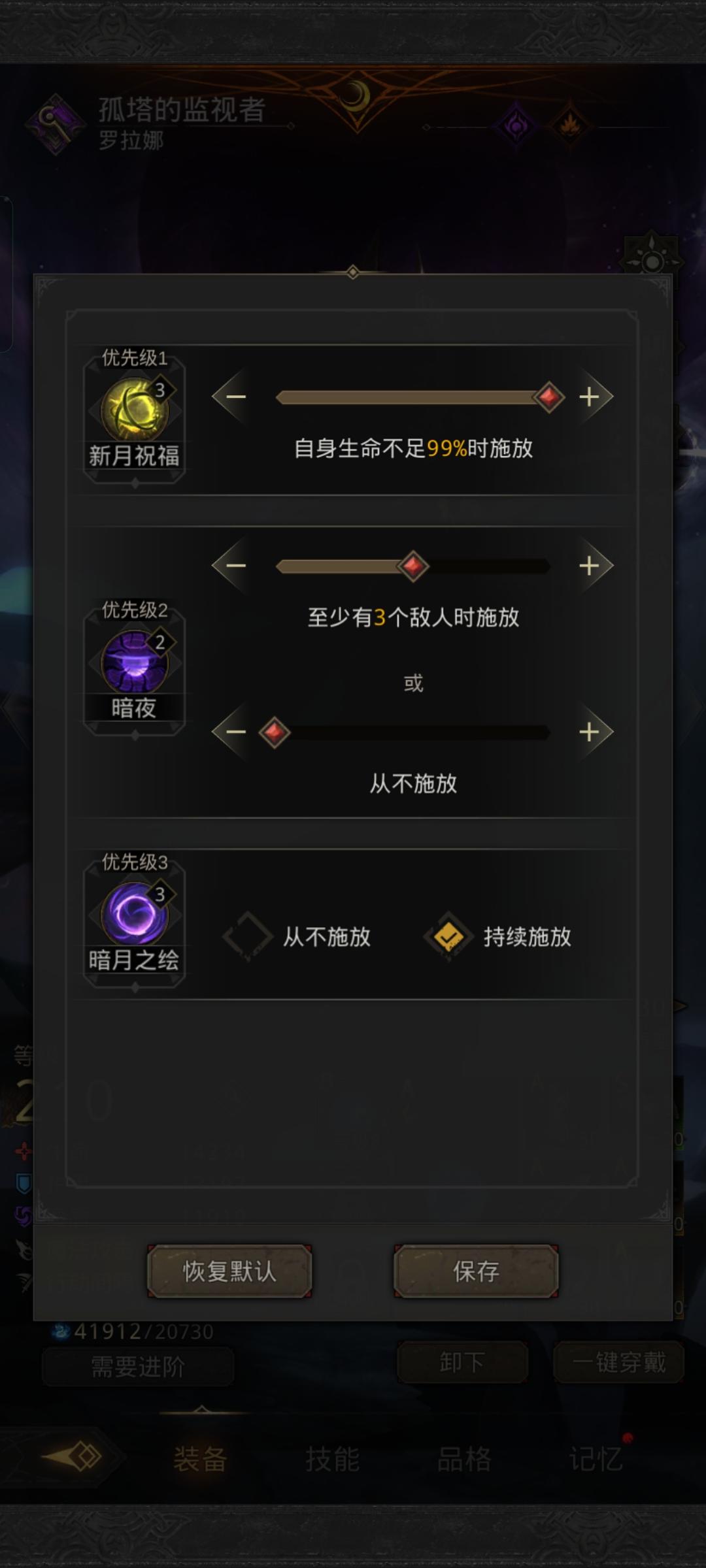 没想到能过,打的时候忘截图了,这阵容试了第二次就过了,最后就暗语和守林人死了。我看攻略都是千面,我开局娜娜没千面,就从第一天到今天第八天,一直是娜娜单c,强不强是版本的事,好看就完事了。2豆开局,平时大概能坚持到到永望开第二个大才团灭,本来想着赌脸再撑九秒,等第三个豆娜娜吼三次之后月华阶段清自身状态单挑boss的,没想到第三个大直接吼死了。娜娜符文带的15级伺机,装备配置在那里。大佬老早过了,这游戏也没啥新手了,也没啥人法师开局,发出来大家随便看看。