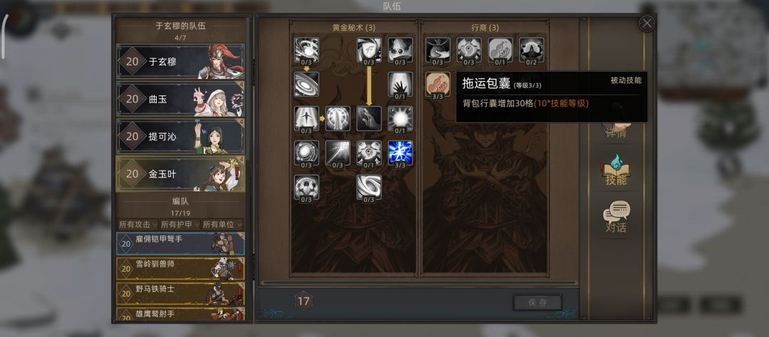 洗掉包裹技能,第二天技能失效之后再点,0级技能,包裹容量65