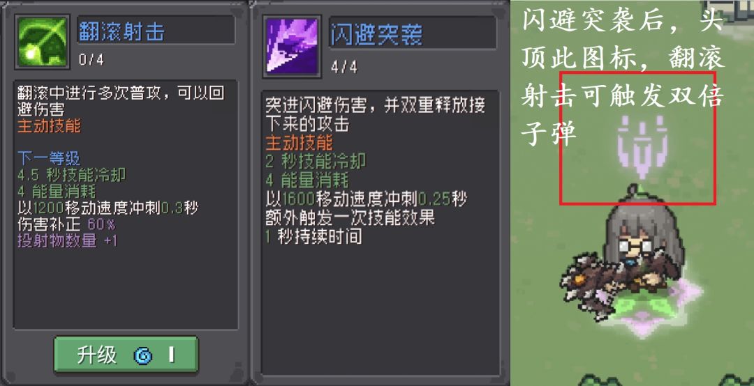 此攻略为纯翻滚流游侠,主要输出手段:翻滚射击和闪避突袭。闪避突袭可以躲避伤害,闪避突袭后接翻滚射击,可额外触发一次技能效果,相当于翻滚射击的子弹翻倍。前期可先加精准弹幕和箭雨升级,闪避突袭对这两个技能也有效果,羁绊用扩散和双重新星,正常刷图敏捷面板100~150,其他全力。后面可以洗点转翻滚流。