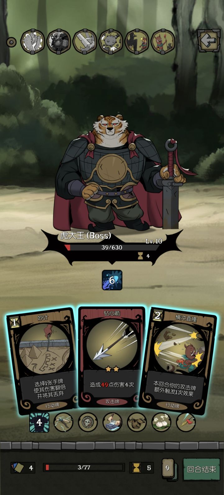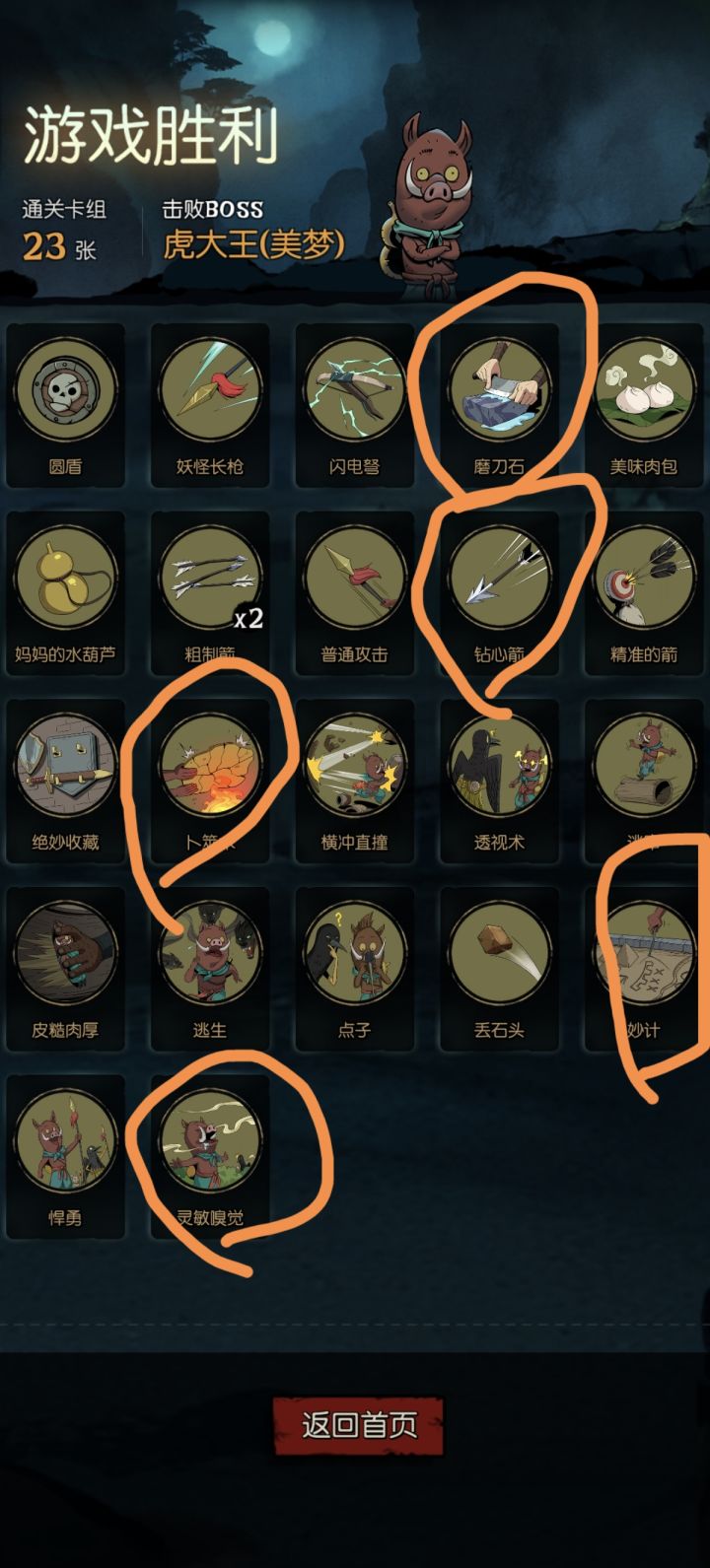 “卜筮”加基础伤害,然后通过“妙计”伤害翻倍,拿“灵敏嗅觉”或者刷牌库,拿回来再翻倍,基本上小怪一轮增伤,第二轮伤害就能秒掉,虎大王也就两轮,第三轮就可以秒掉,不需要花里胡哨的操作。