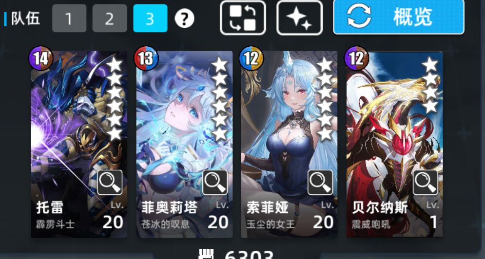 其次是第二队,因为我个人觉得在有强力爆破的情况下,有一个能长期提供潮汐的可以大幅度增加额外的概率,然后就是为什么优先第四队,因为菲琳能叫人,可以抗刀,吃技能,还能恐惧,实用性较高