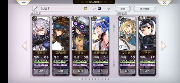 很开心啊,因为只有几个火系4星,突发奇想试了一下过了,所以分享一下。配置图如下,其实算不上低配哈。条件是做了地属性的支线,保证狼姐没被吹走。贝内迪特用来上一个斩耐性down,米思特雷拉唱歌回血