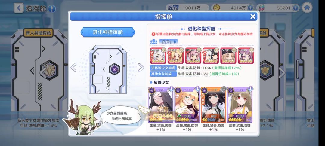 指挥舱一个抢我钻石的地方,很多中后期小伙伴提升战力乏力,那么开指挥舱就是一个提升战力比较快的地方,每个小伙伴练度会存在差异,所以每个人的指挥舱加成都是不一样的,这和很多少女的练度星级挂钩,一般觉得自己队伍已经接近毕业啦,那么就可以开舱啦!接近一个队伍毕业的练度,指挥舱开满再怎么说也有个几千万叭~这里记住哦,所有的指挥舱都可以增加上阵少女的战力,比方说我主玩新人类,开了进化族的舱也是可以吃到一定比例的加成滴(虽然很少,但比起武器图鉴加的战力已经碾压了)![[嗒啦啦4_瑟瑟发抖]](https://img-tc.tapimg.com/market/images/e1d7088cac53bbf4280b0c019b020da8.gif)