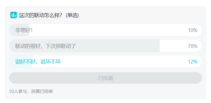 莫不成是指坛子里超过一半儿以上的人表示“联动的很好”?