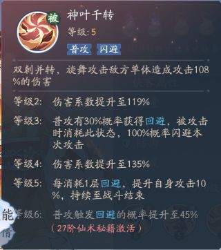 2.2.2普攻分析:普攻有45%概率触发回避,可以100%闪避伤害,并且每消耗一次回避增加自身攻击10%。该技能作为可以提升火雪见的生存力,而且每消耗一次永久提升攻击10%,可以让火雪见在以伤害数值竞争的boss战更加脱颖而出。