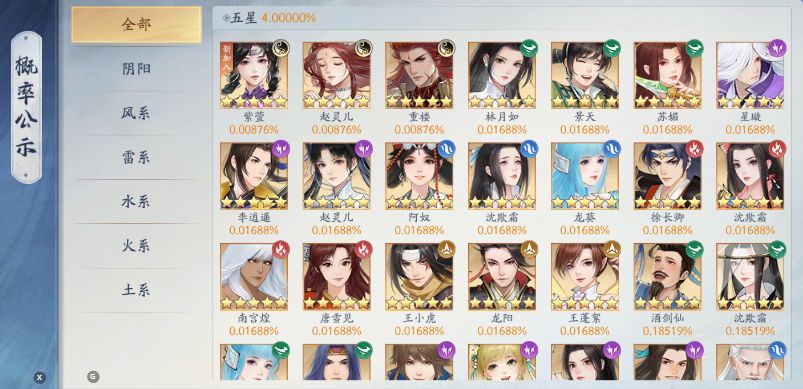 火雪见、雷灵儿、雷逍遥、风月如、阴阳灵儿、雷星璇