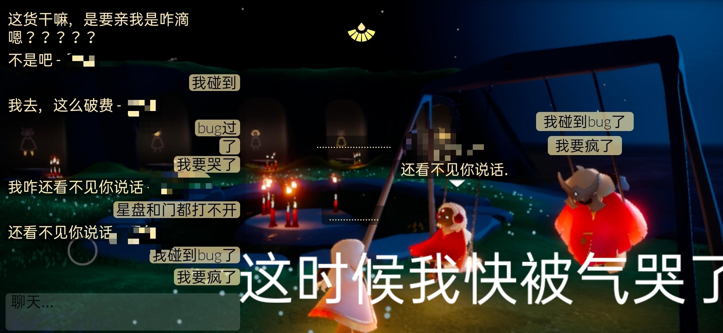我当时心态有点崩但是第二次在这里虽然看不到门和星盘能看到朋友但是必须做秋千上才能和他聊天直接点对话框他也看不见