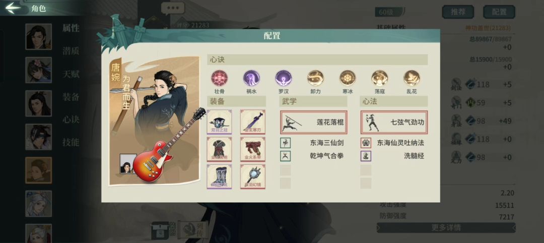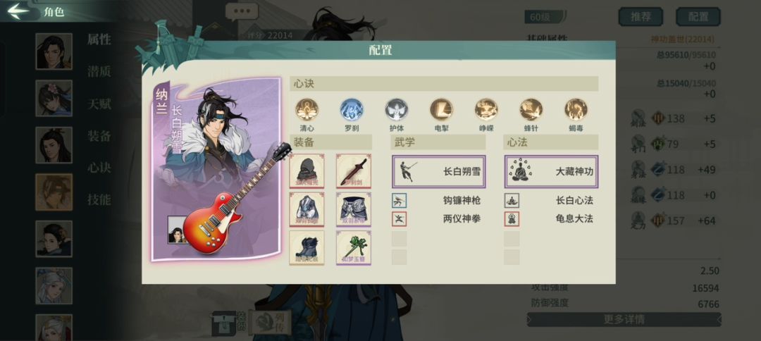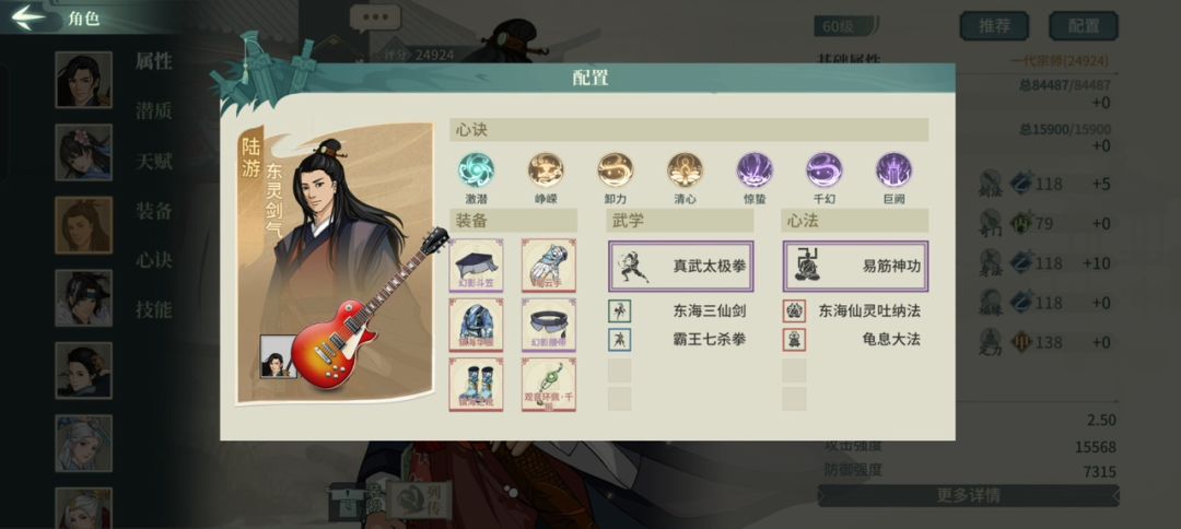 具体配置都在图片上面,装备没什么资源洗练,心决没有太玄玉去升级,极书更是严重不够,能拿到一本就升级一次