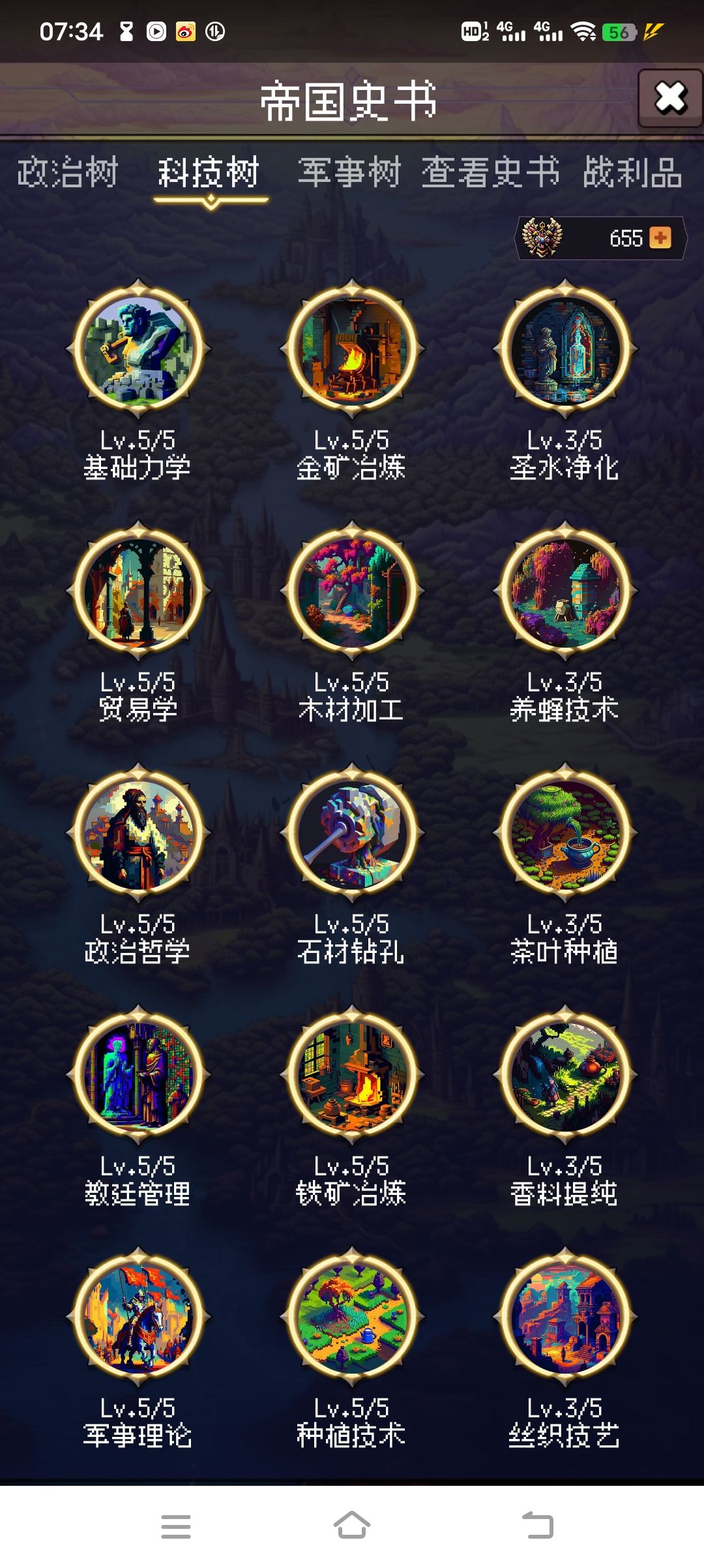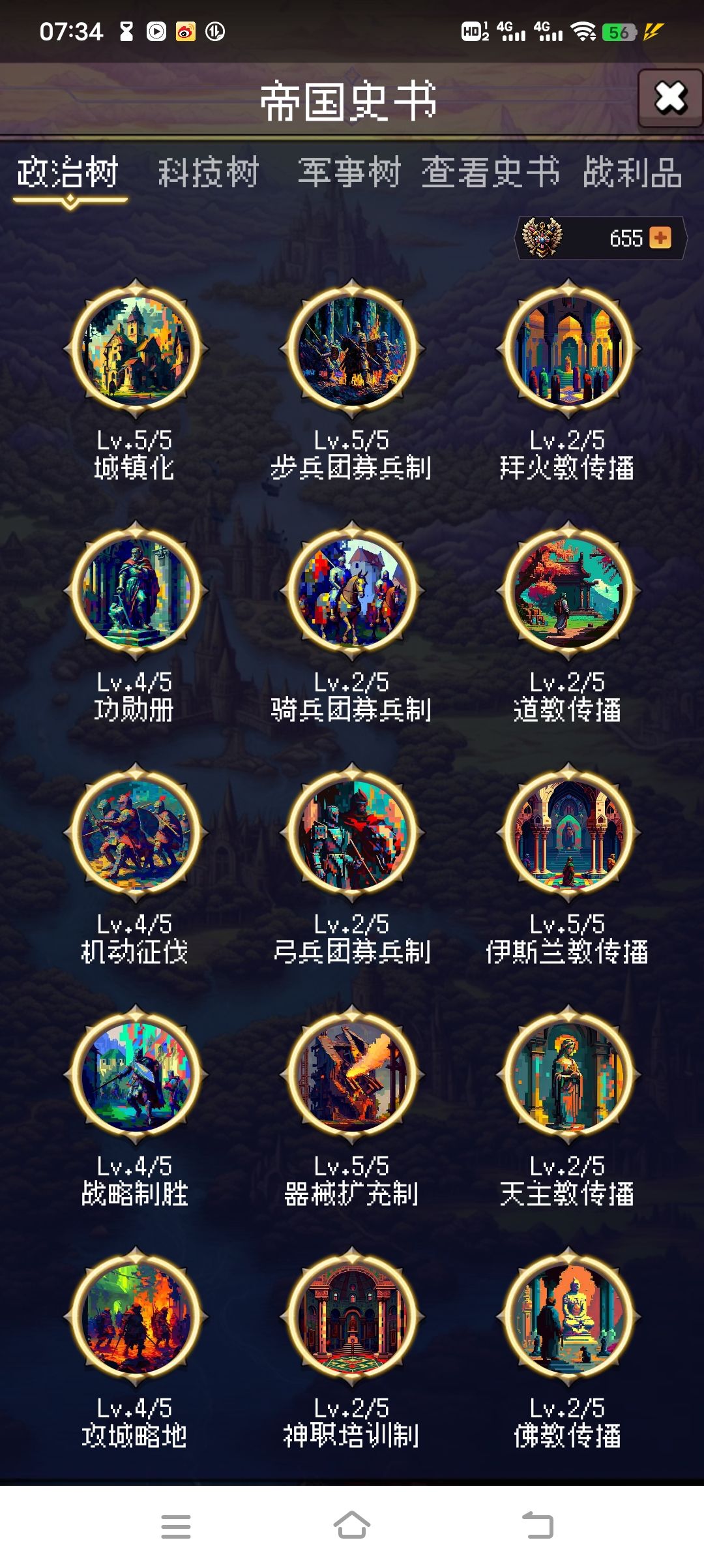 政治树主要是左侧这一溜,点成这样游戏就不缺钱(我点得略多了一些)。