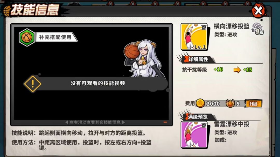[进攻]专注时刻:专注时刻提升抗干扰能力的等级,小飞侠在内外线的得分都颇具实力,但是作为后卫和小前锋外线投篮时最怕就是对方的干扰,所以需要增强抗干扰的能力。
