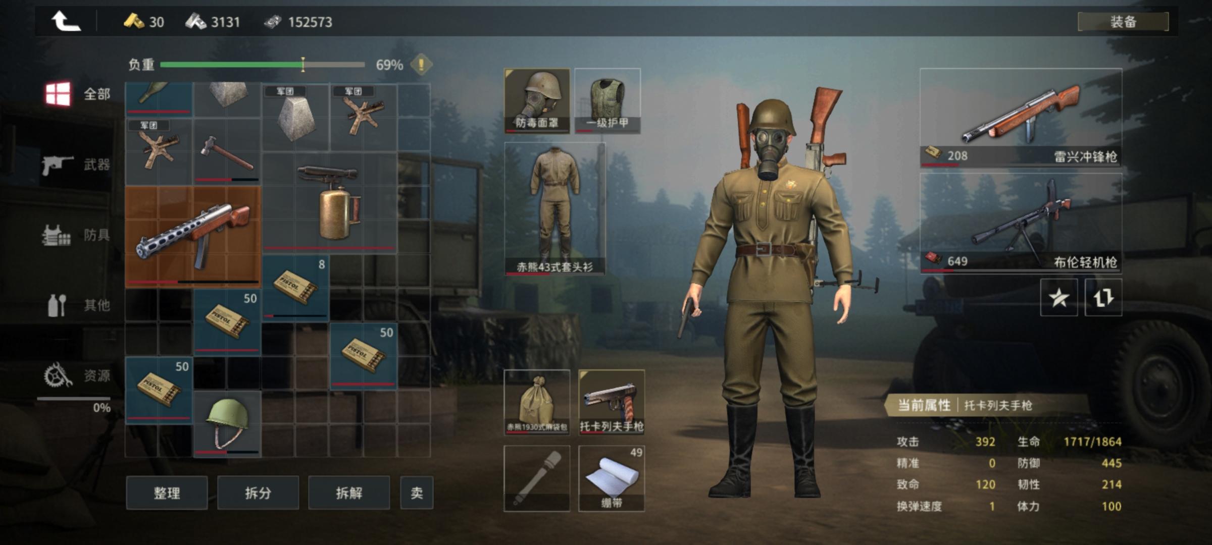 经过多日的消耗,我军团几乎人人都缺硝石,石头,橡胶,铬,石油。木头却常常爆仓,所以资源系统的平衡需要改进,制作系统问题不大,就是制作熟练度应该增加获取方式。子弹永远都缺,为了省子弹,我们甚至都用近战武器去打战场。