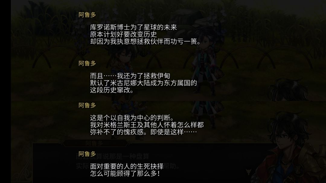 说到底,这个紫苑相比原来的更加“自私”了,就像阿鲁多与他聊起自己在主线中的选择那样,面对重要的人的生死抉择,不去顾及太多,反而显得更加自由洒脱(虽然也提到他事务繁重),明明身份更高了,却更有亲近感,更接地气了。