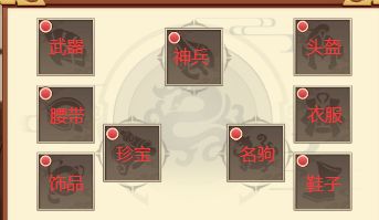 在虾米三国中,每个角色均有6+3个格子可供装备,如上图所示部位。