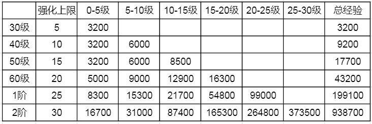 装备强化消耗一览表
