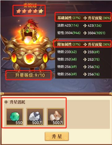 装备升星这个功能,可以理解为装备的全面提升(基础属性和特殊属性均提升,满星提升30%左右)