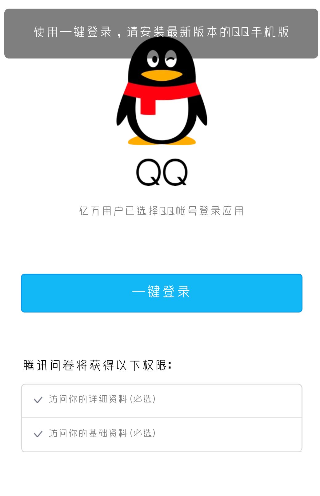问题描述:填写不了问卷,一直提示使用QQ最新版