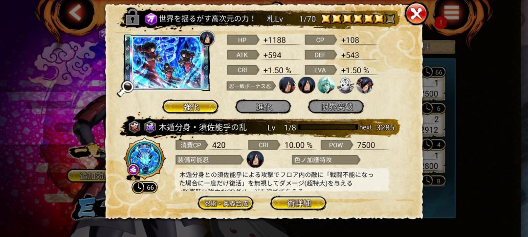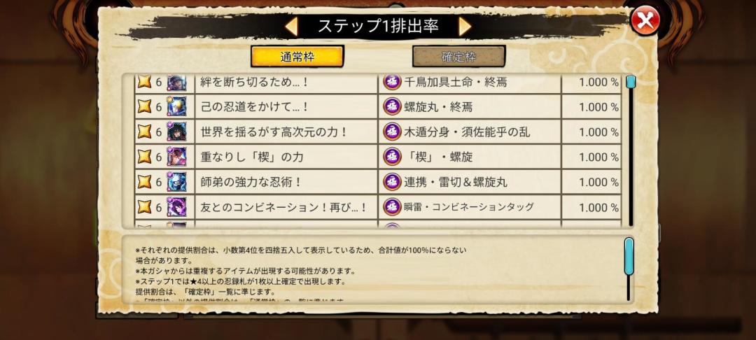 都发现了.其实这里的技能主要是忍者卡。需要对应的忍者卡片,就比如第2幅图。需要里面去抽取。我已用图片从左到右,依次排,抽卡的主要步骤。然后进行装配,可以在抽之前预览一下技能,后面的两张是整卡的出现概率。注意看第2张图片,有三个显示忍者。这说明什么呢?意思就是说这三个抽出的概率会更高。仔细观察第4幅图。后面的百分比就是出现的概率,相对来说比较容易出,抽出了强化到满为止,(同时保证奥义的威力提高伤害),保证强化材料足够,整完这个之后就好去上战场了。体验一下奥义的威力