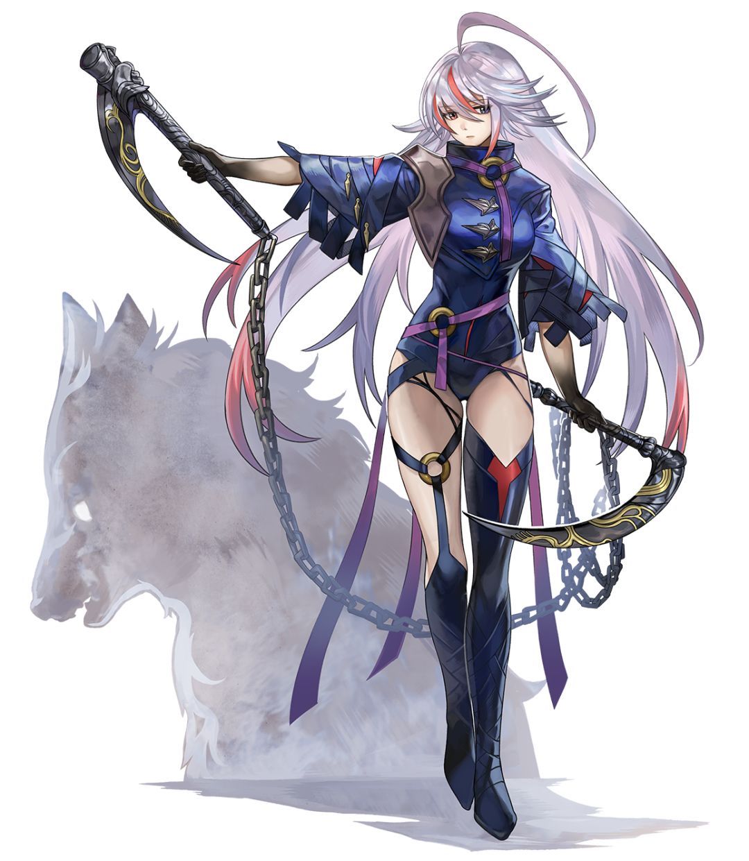 灰白色的长发,发梢的红色象征着狼姐永不止息的愤怒![[嗒啦啦4_好气哦]](https://img.tapimg.com/market/images/720ff2dcca775b461dc77a398c35dcb8.gif)