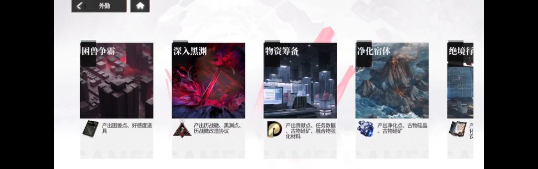 游戏主要就是培养角色与神器,以及竞争。游戏内容方面主要包括了主线,公会,外勤,其中外勤又包括有不同玩法,会分别获取我们所需要的资源。
