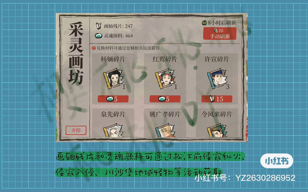 画轴残片和灵魂颜料获取:可通过松江府倭寇纵火、倭寇入侵和川沙堡抵御怪物等活动获取。