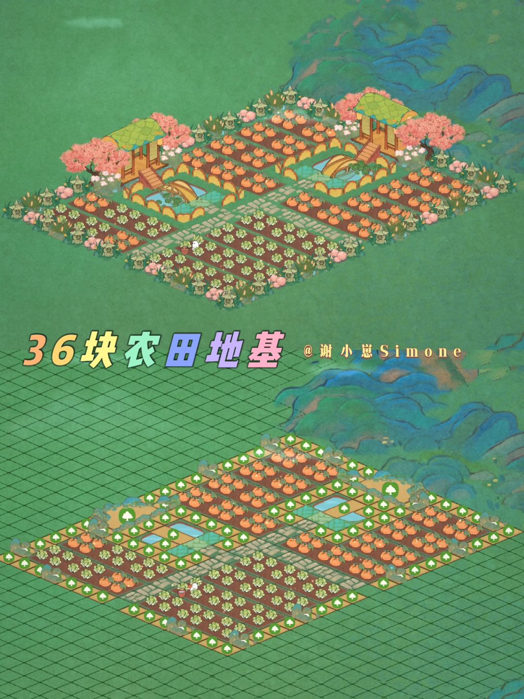 今天给大家分享36块农田和18块农田的布局,受造景地基限制,36块农田没发造景,18块农田发了造景(两个18拼在一起也很好看),可以根据自己喜欢的季节调整植物哦~