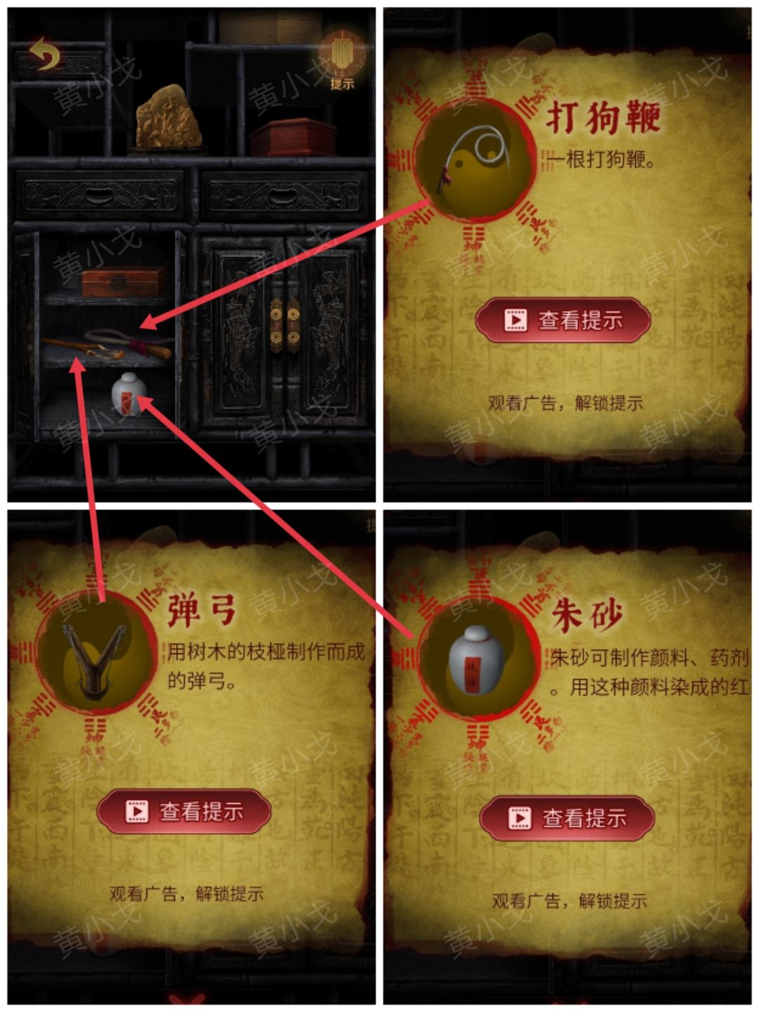 11.打开柜子,获得【打狗鞭】、【弹弓】和【朱砂】