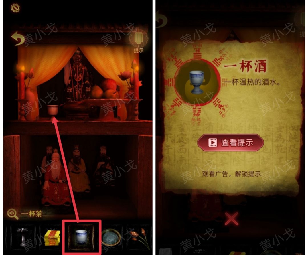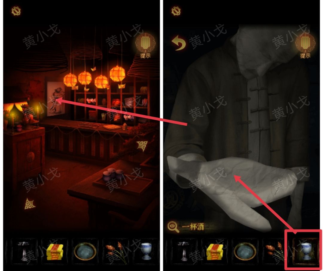 5.点击墙上的画像,拿【一杯酒】给纸人