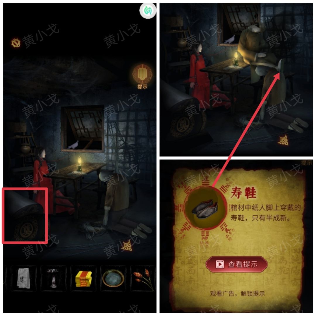 8.点击打开棺材,出现纸人,在纸人脚上获得【寿鞋】