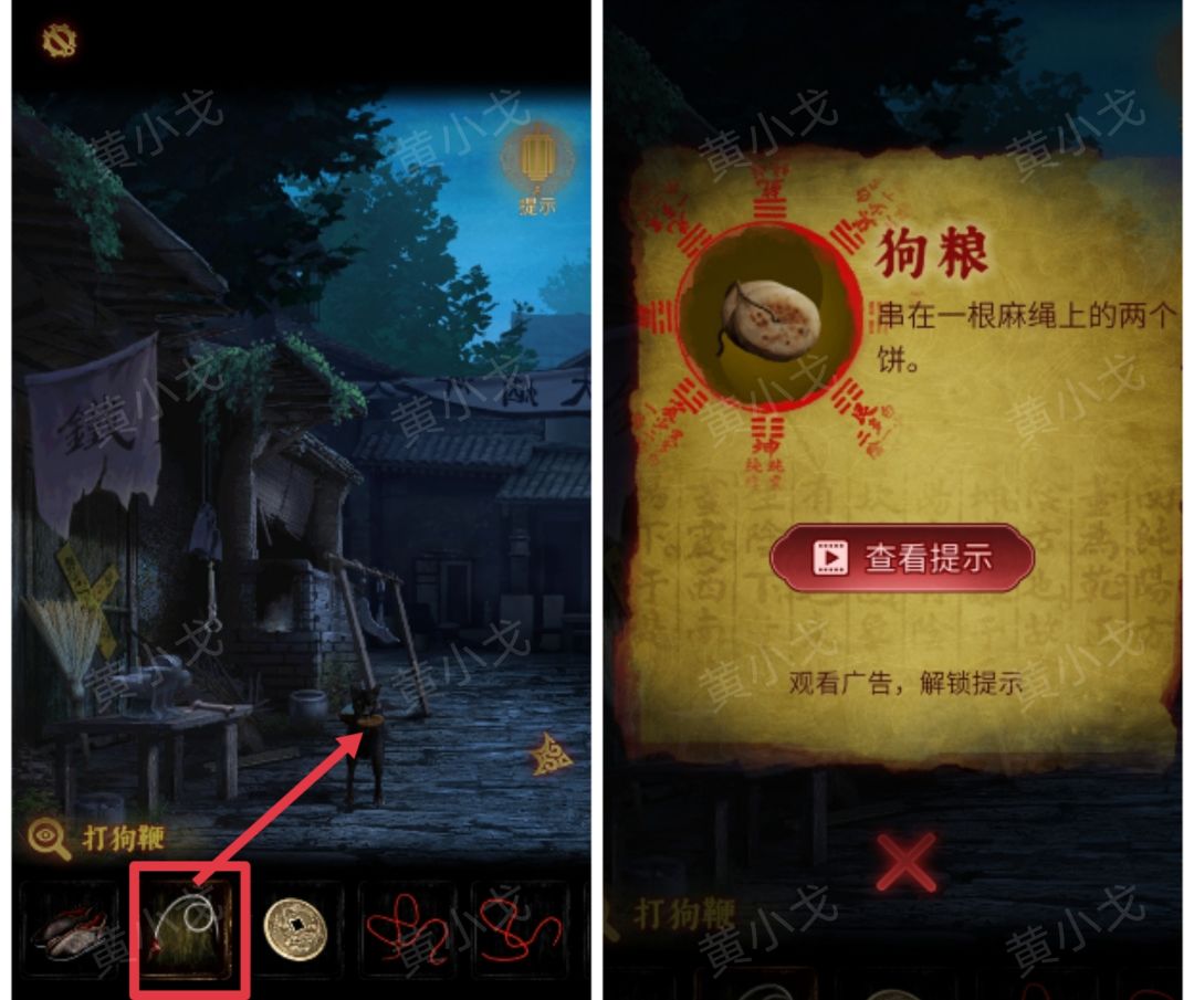 18.(铁匠铺外)对狗使用【打狗鞭】,狗跑路,获得【狗粮】
