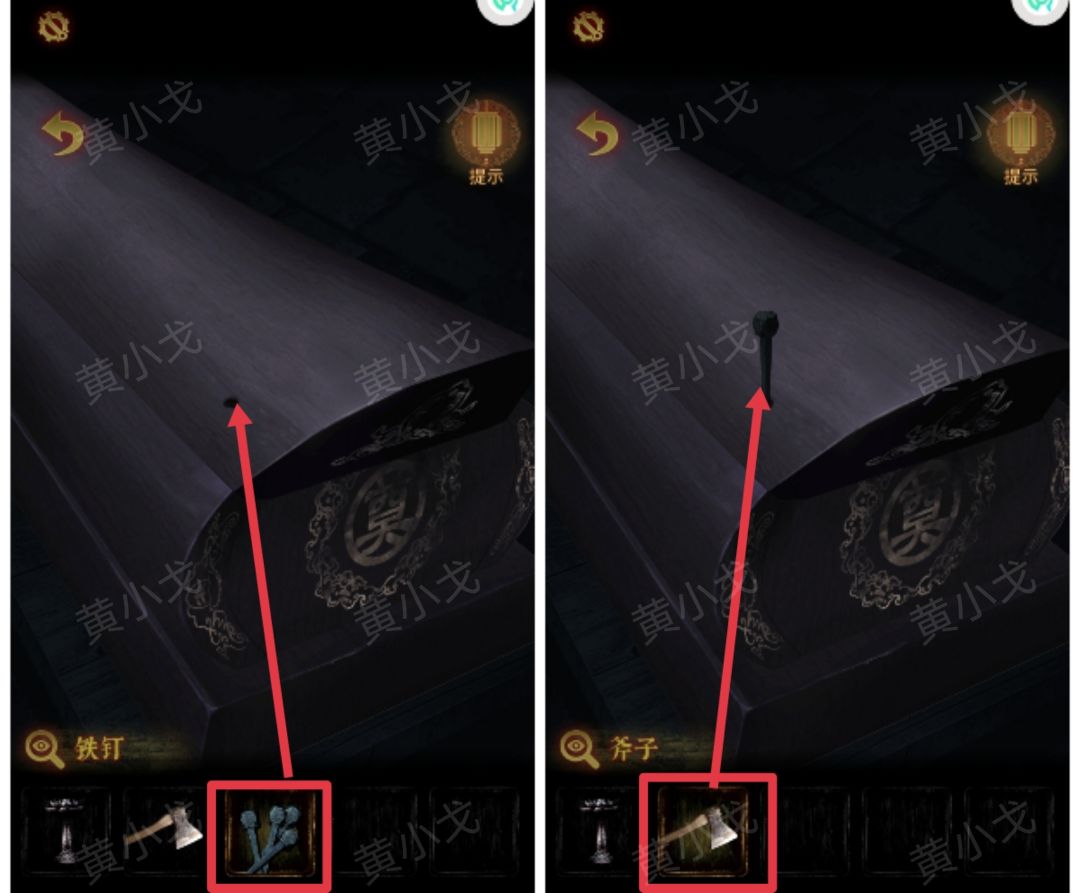 29.点击棺材,放上【铁钉】,用【斧子】加固