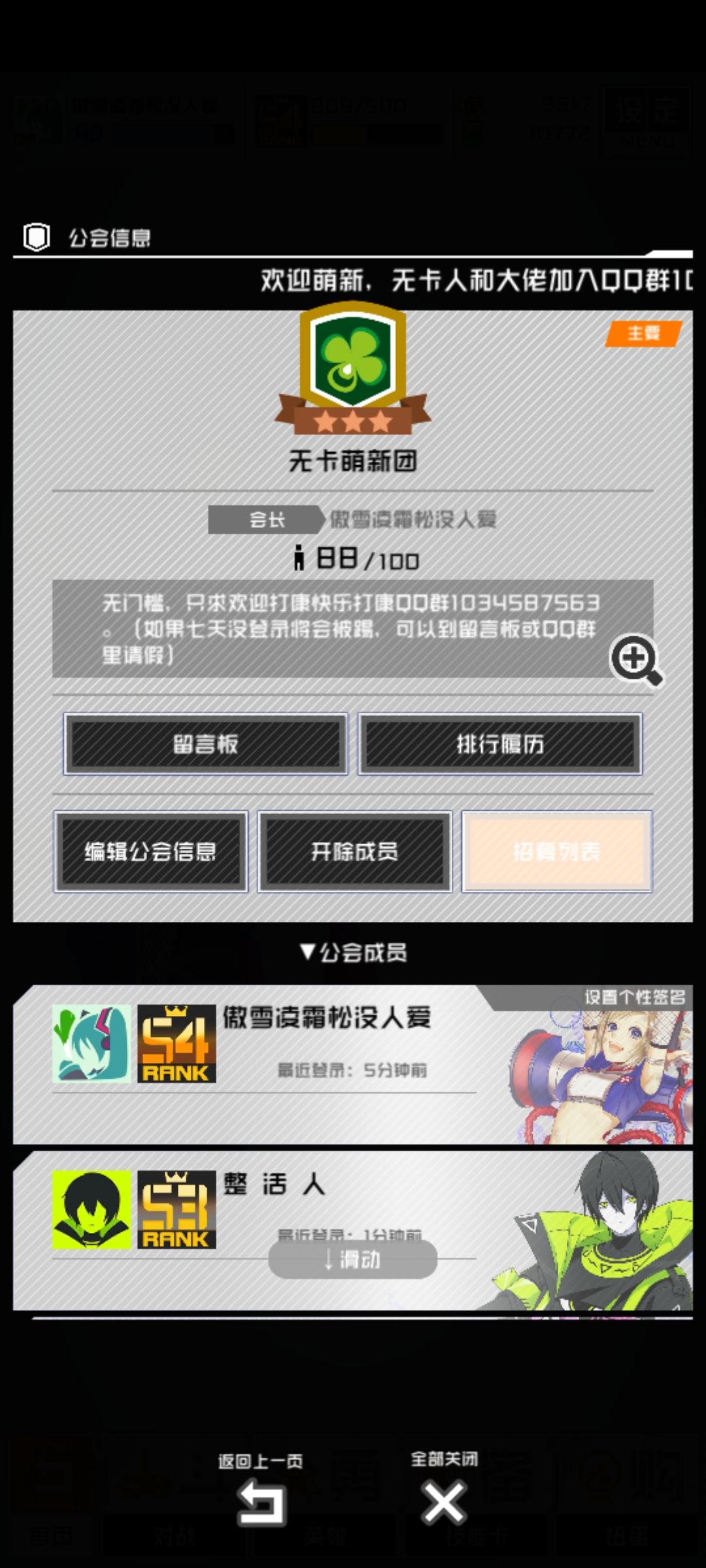 公会再次招人了。(只要活跃玩家不管大佬还是萌新,QQ群里还有福利领哦)