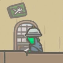 一只害羞的小青蛙服务员,和他对话他就会闪到墙后